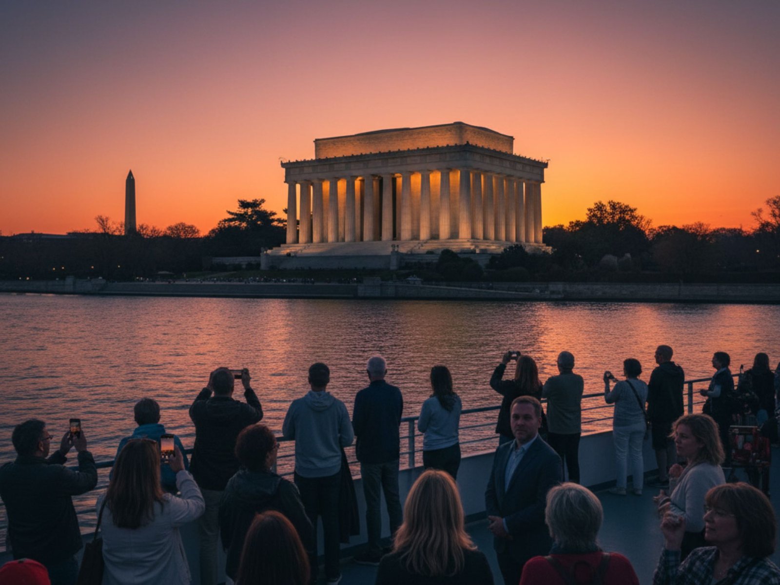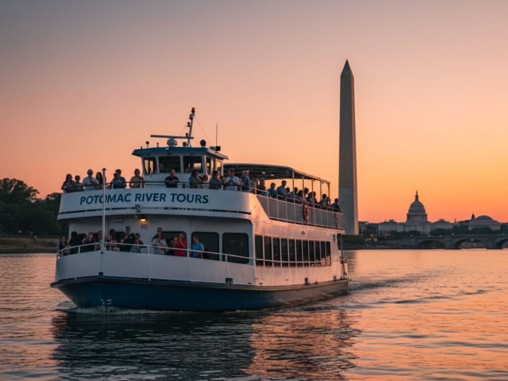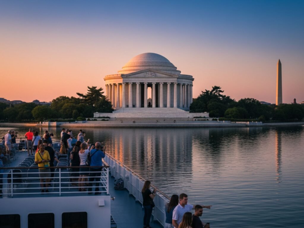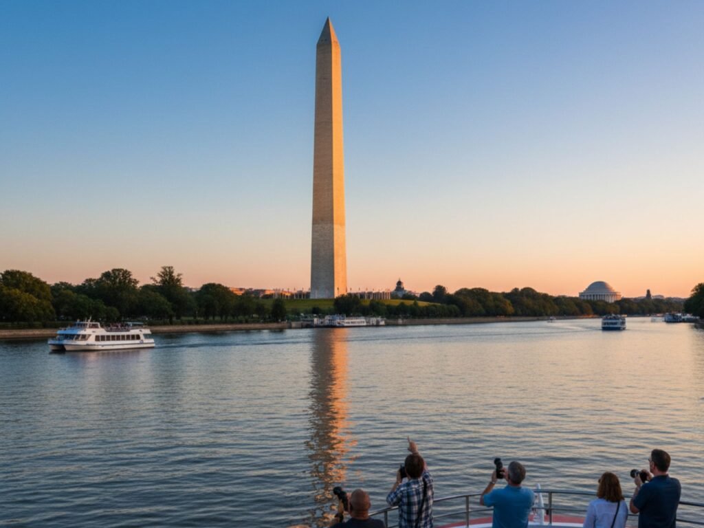 Travel along the Potomac River to experience a remarkable array of iconic monuments and landmarks, enjoying stunning reflective views of the Thomas Jefferson Memorial, the Lincoln Memorial, the Washington Monument, and more, all framed by the timeless skyline of