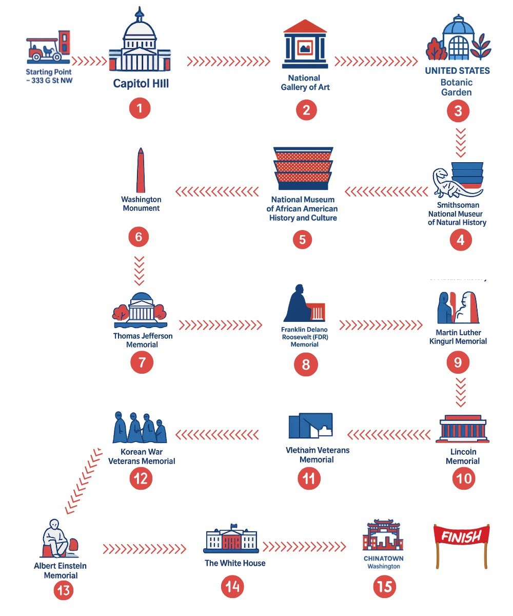 - Return to the starting location at the end of the tour with memories, photos, and a new appreciation of D.C.’s heritage.